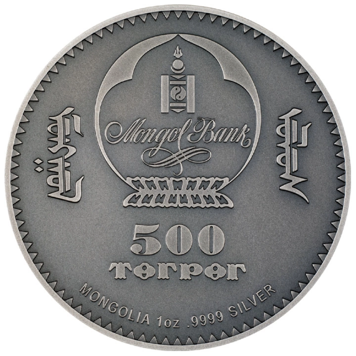 La moneda fue acuñada en plata pura Ag.9999, con un peso de 1 onza troy, 38,61 mm de diámetro, en patrón envejecido y altorrelieve. La acuñación de la moneda es de 999 piezas. Tiene curso legal en Mongolia. La empresa CIT Mint - Coin Invest AG es responsable de la emisión de la pieza.