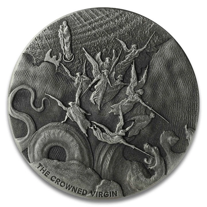 Niue: Bíblica - La Virgen Coronada 2 onzas Plata 2019 Proof Antiqued Coin