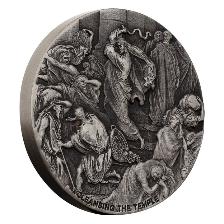 Niue: Bíblica - Limpieza del Templo 2 oz Plata 2022 Proof Antiqued Coin