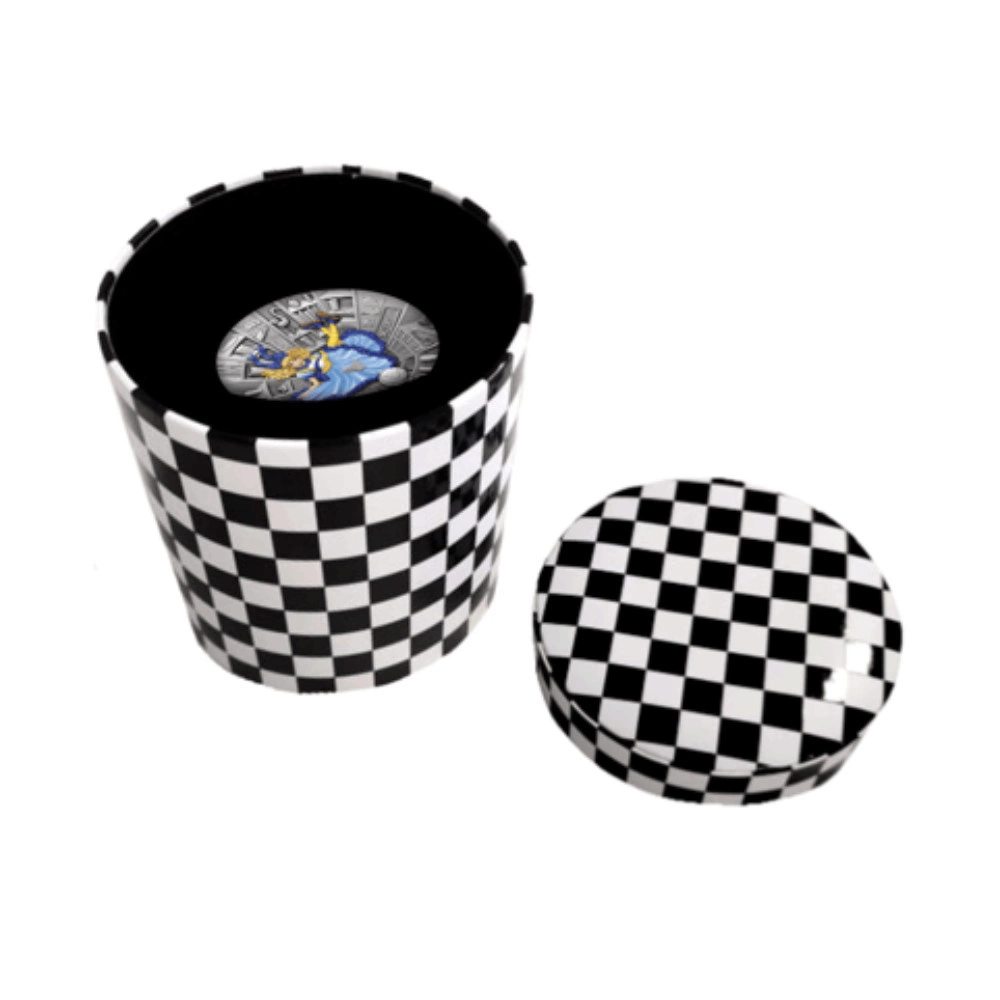 El embalaje se ha diseñado con un patrón de tablero de ajedrez para subrayar la idea del mundo de la fantasía. La moneda Blue Fairy Tale High Relief Antiqued se entrega en su caja original junto con un certificado de autenticidad.