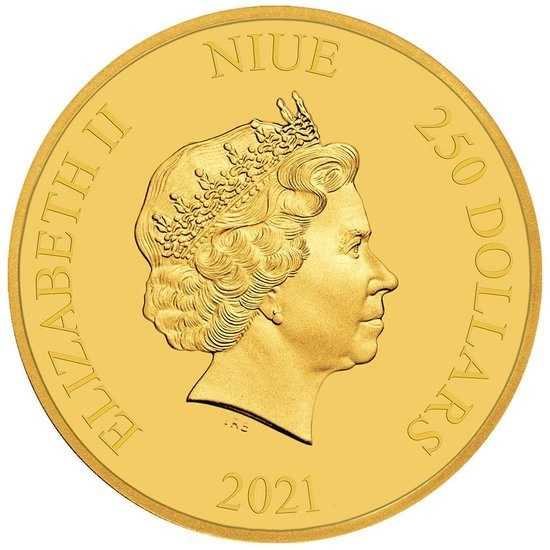 El anverso de la moneda de oro está decorado con la efigie de la reina Isabel II e información sobre el país emisor, el valor nominal y el año de emisión.