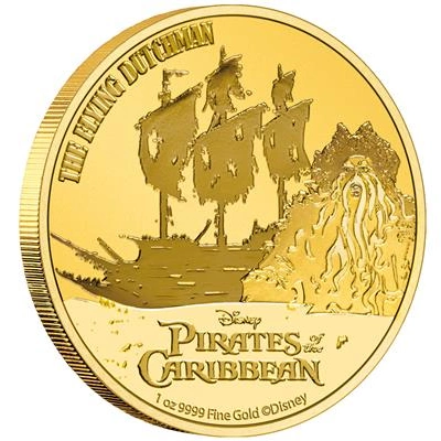 Niue: Disney Piratas del Caribe - Holandés Errante 1 oz Oro 2021 es la segunda moneda de la serie Piratas del Caribe con licencia Disney. La primera moneda muestra el barco pirata Perla Negra que se hizo famoso en la icónica película. El Holandés Errante es el barco en el que se ambienta Piratas del Caribe 2, con Davy Jones como capitán.