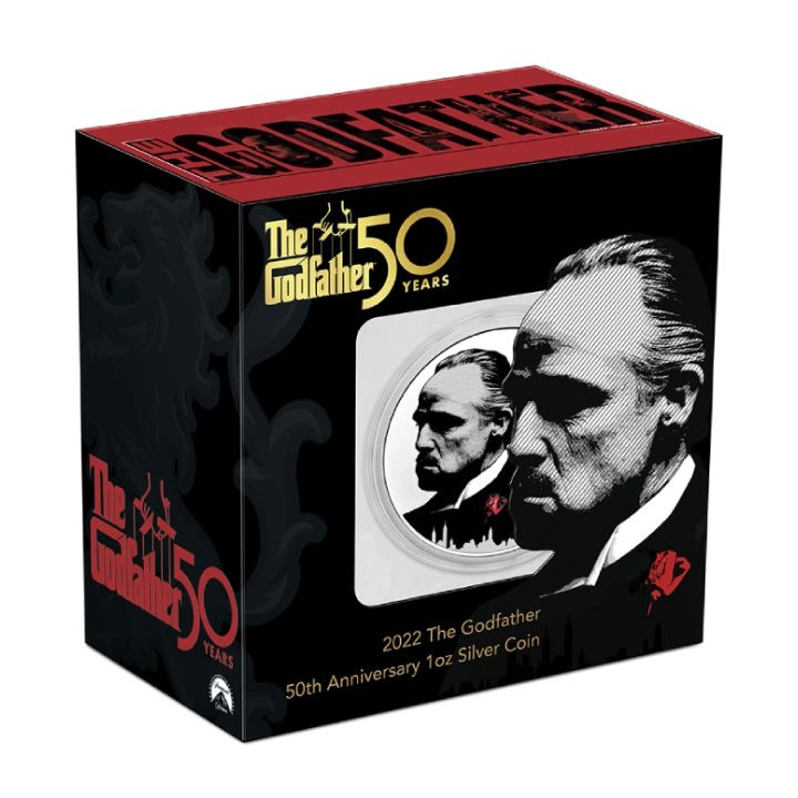 Los resguardos muestran una imagen coloreada del protagonista de El Padrino con una rosa roja y la inscripción "I DON'T APOLOGE TO TAKE CARE OF MY FAMILY" (No me disculpo por cuidar de mi familia). En el reverso hay información sobre el peso y la pureza del lingote.