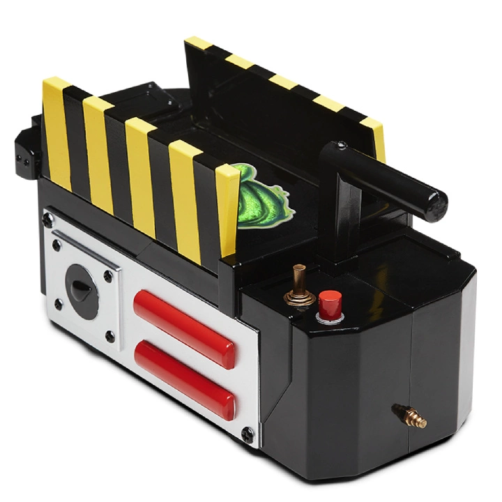 El reverso muestra una imagen coloreada del personaje de la película «Los Cazafantasmas» - Slimer.