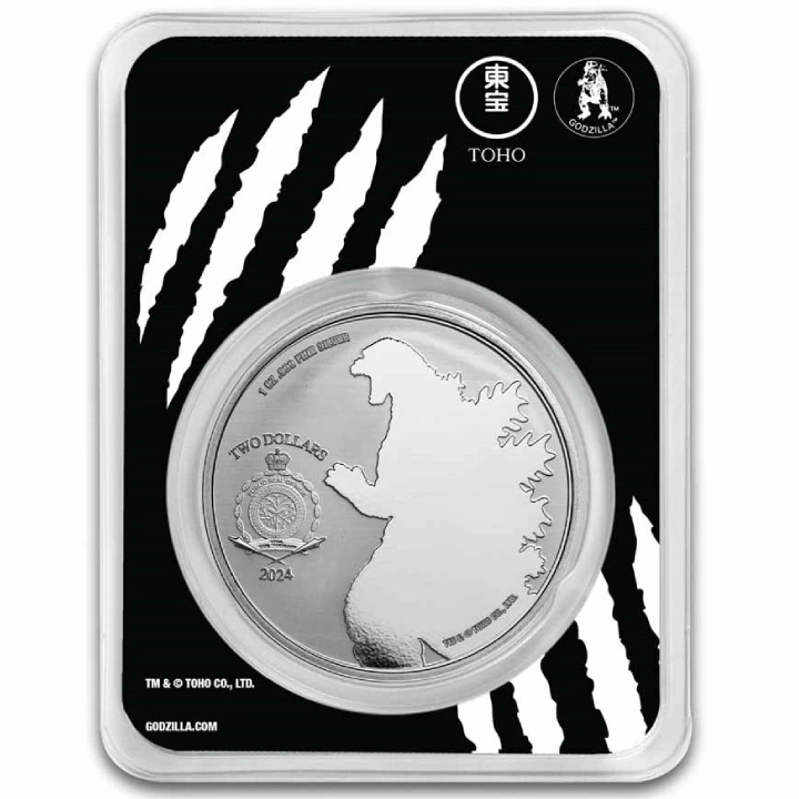 El Anverso del producto muestra la figura de Godzilla, el escudo de armas de Niue e información sobre la fecha de emisión, el valor nominal, el peso y la pureza del lingote.