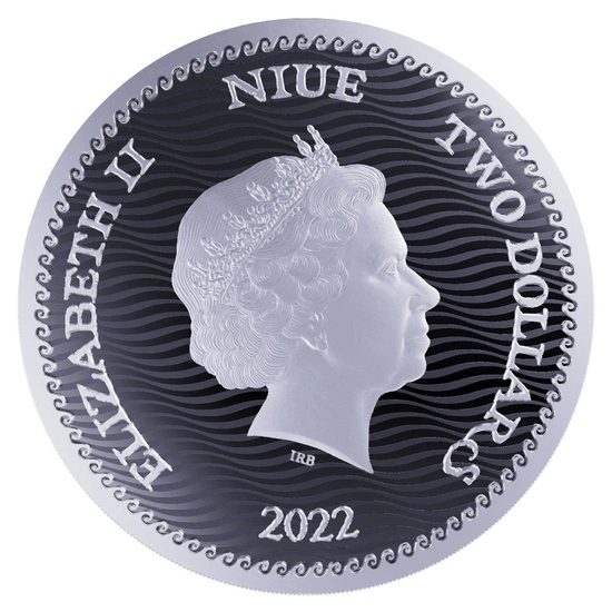 El anverso de la moneda de plata muestra la imagen de la reina Isabel II, la inscripción "ELIZABETH II", "NIUE 2022" e información sobre el valor nominal de la moneda. El diseñador del anverso fue Ian Rank-Broadley.