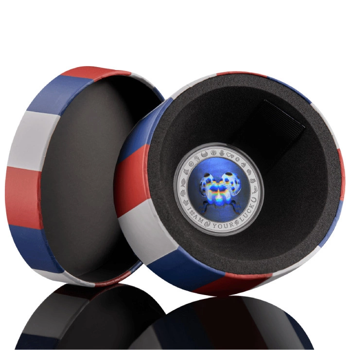 El anverso muestra una mariquita coloreada con un holograma en 3D y la inscripción "YO SOY TU SUERTE".