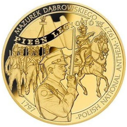 La moneda de Niue: Mazurek Dąbrowskiego 1/4 oz de Oro 2022 Proof es una pieza numismática excepcional que conmemora uno de los símbolos más importantes de la identidad polaca: el himno nacional polaco.