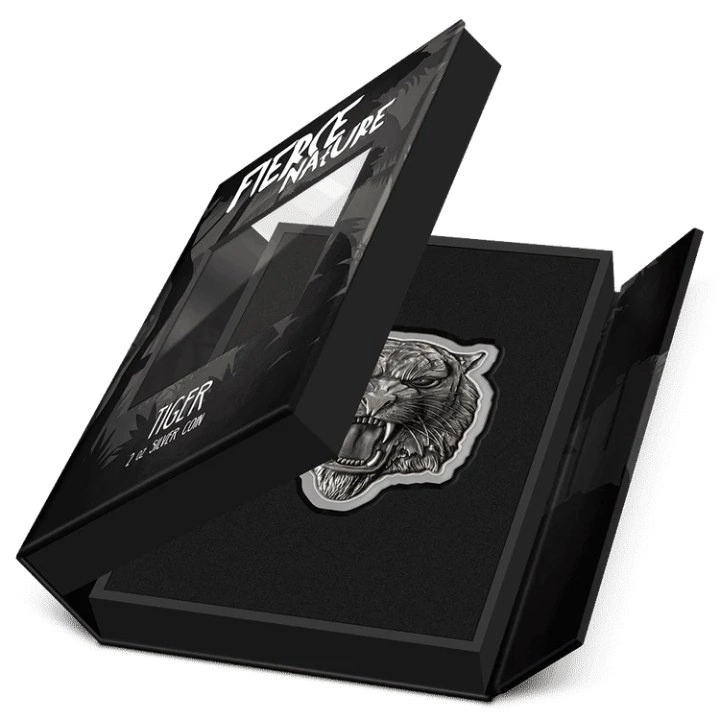 Niue: Naturaleza Feroz - Tigre 2 oz Plata 2022 Acabado Antiguo