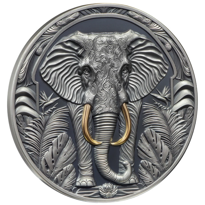 El Reverso muestra un elefante con los colmillos chapados en oro.