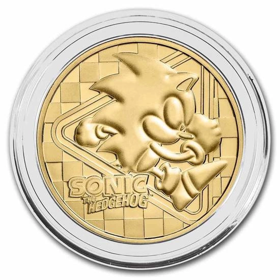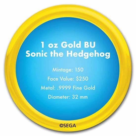 La Niue: Sonic The Hedgehog 1 ounce Gold 2022 está acuñada en lingotes de oro puro Au.9999, pesa una onza troy y mide 34 mm de diámetro.