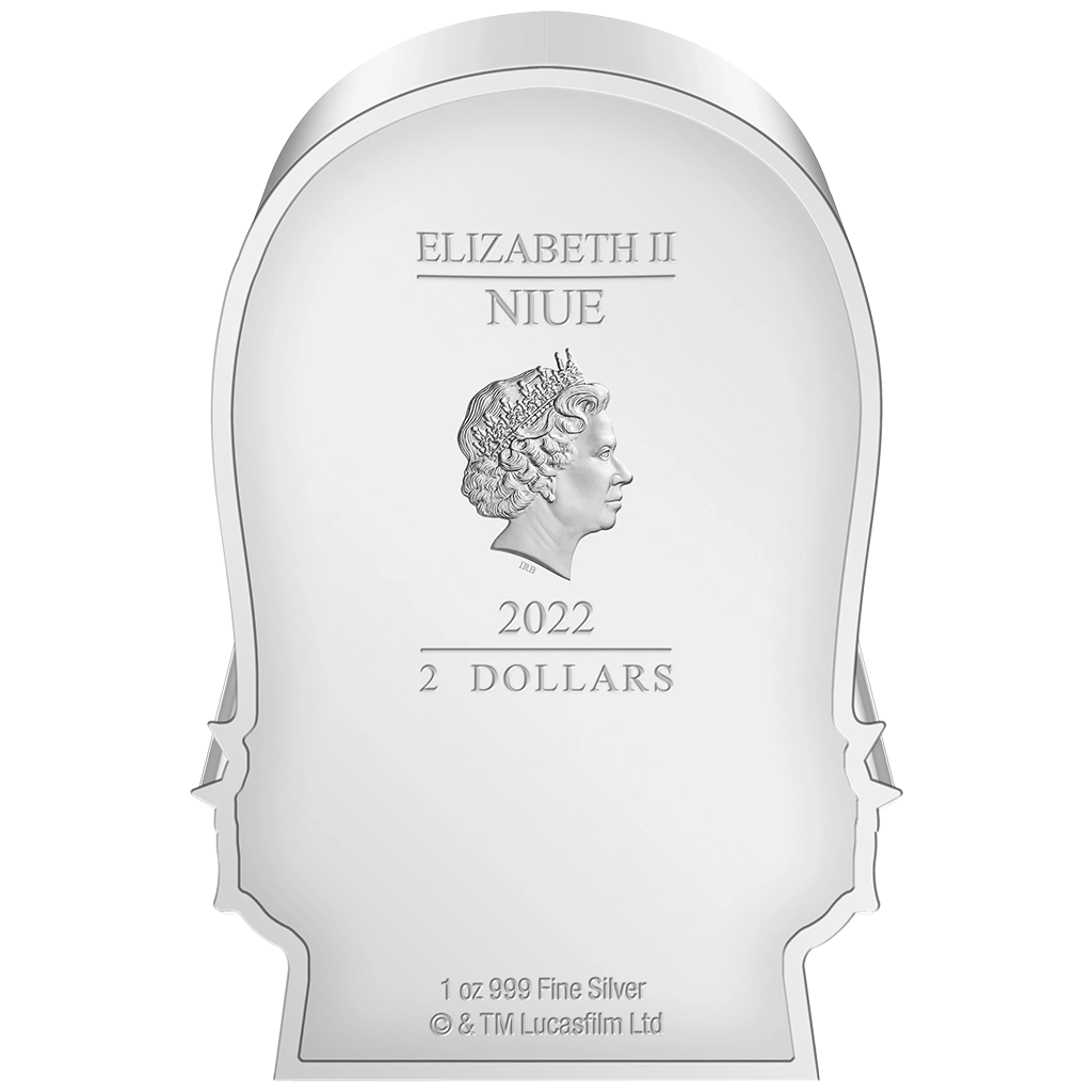 El anverso muestra el escudo oficial de Niue junto con el valor facial, el año de emisión, el peso y la pureza de la plata, así como el símbolo de derechos de autor.