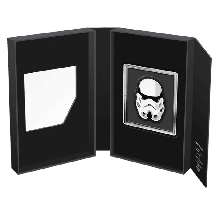 La moneda de plata de Star Wars es un auténtico regalo para los fans de la emblemática serie cinematográfica de George Lucas que busquen una inversión segura y probada. La moneda ha sido acuñada en plata de ley Ag.999 pura, pesa 1 onza troy y mide 36 mm x 29,4 mm, estándar proof. La tirada es de 10.000 piezas. El productor de las piezas es la Fábrica de la Moneda de Nueva Zelanda. Las monedas tienen curso legal en el país emisor.