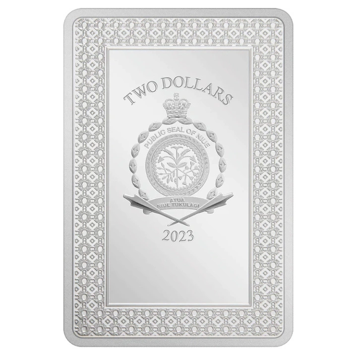 El anverso de la moneda de plata muestra el escudo de armas de Niue junto con información sobre el valor nominal y el año de acuñación.