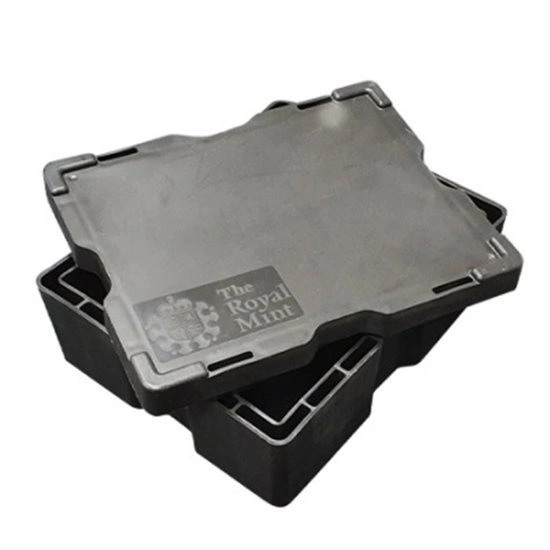 El embalaje masterbox es una solución probada que utilizan habitualmente las fábricas de moneda. Las masterboxes pueden almacenar y transportar decenas o incluso centenares de monedas de colección. Este tipo de embalaje está hecho de plástico grueso y muy duradero, que protege perfectamente los tubos con monedas. La tapa de la masterbox presiona las tapas de los tubos y garantiza que toda la colección de monedas de caldo se almacene de forma segura. El embalaje masterbox individual está dedicado para su uso con tubos de monedas específicos.