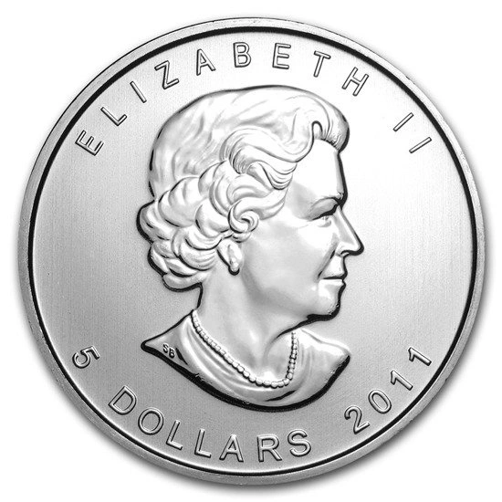 El reverso muestra la imagen de un oso pardo, así como la muestra en la que se acuñó la moneda (Ag .9999) y el nombre del país (Canadá) en el que se produce.