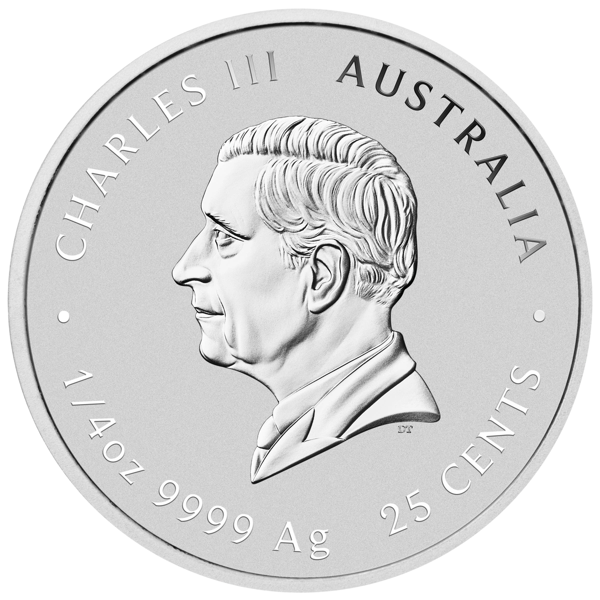 El anverso presenta la efigie de Su Majestad el Rey Carlos III realizada por Dan Thorne, junto con su nombre, el país emisor, la denominación, el peso, la pureza y el año de emisión.