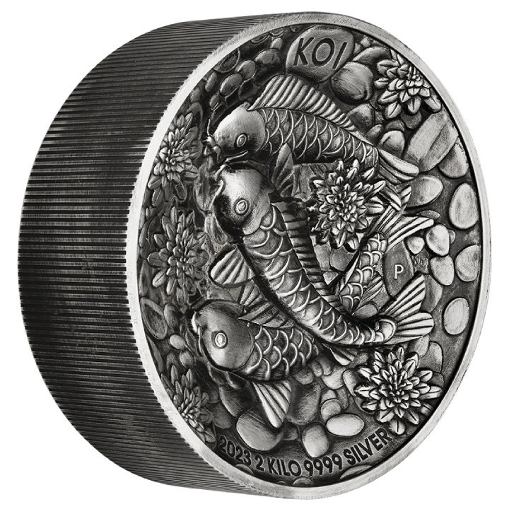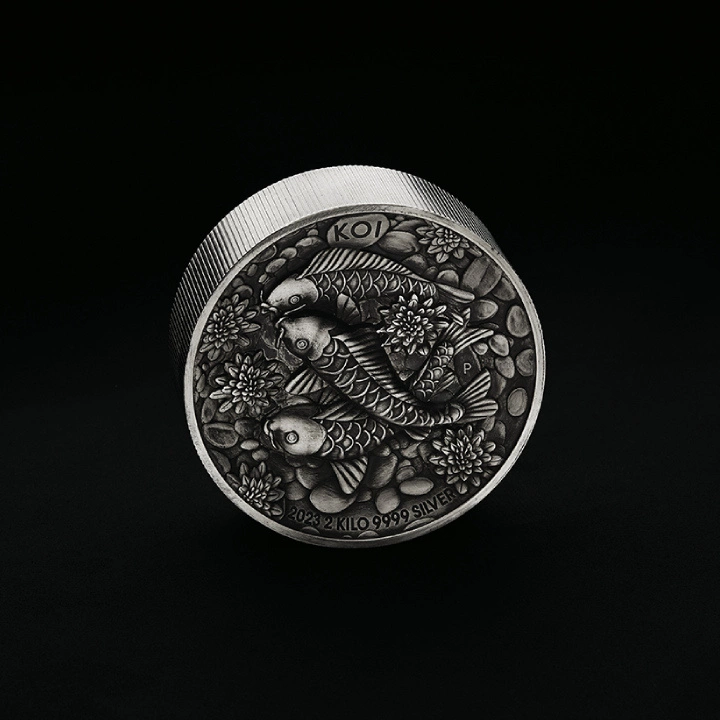 Pez Koi 2000 gramos Plata 2023 Alto Relieve Moneda Antigua