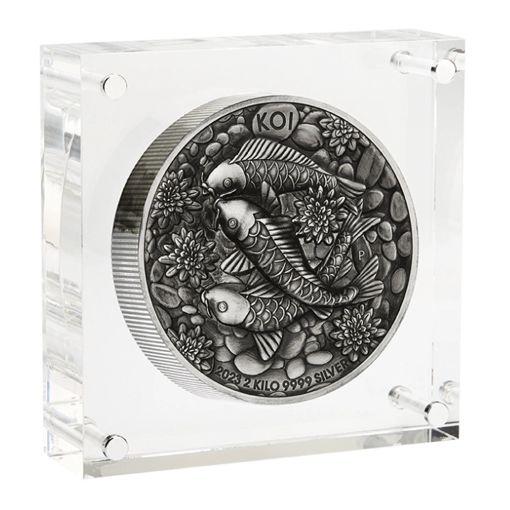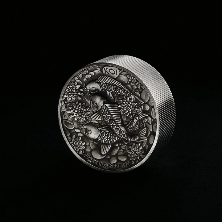 La ceca más antigua de Australia, The Perth Mint, es la responsable de la producción del Pez Koi. La pieza está garantizada por el Gobierno australiano y tiene curso legal en el país emisor.