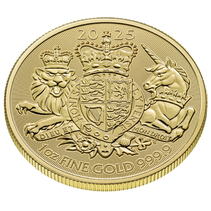 La **moneda de oro Royal Arms 1 oz 2025** es la séptima edición de la cada vez más popular serie de inversión **The Royal Arms**. La edición de 2025 ha sido acuñada en oro puro con una pureza de Au.9999, con un peso de una onza troy y un diámetro de 32,69 mm. Es un producto del reconocido productor británico de metales preciosos – The Royal Mint. Cabe destacar que la moneda de oro Royal Arms cuenta con la garantía del gobierno del Reino Unido y es de curso legal en el país emisor.
