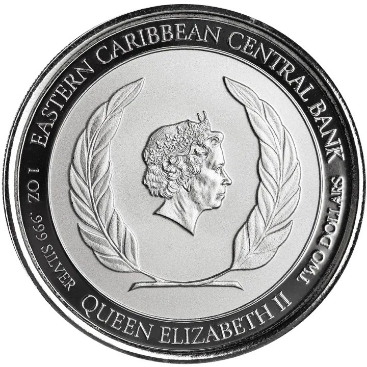 La moneda fue acuñada en plata de ley Ag.999 pura, pesa una onza troy y mide 39 mm de diámetro. La moneda de plata fue producida por la Fábrica de la Moneda de Scottsdale, en una tirada reducida de sólo 25.000 piezas. Está garantizada y tiene curso legal en los territorios de los ocho países del Banco Central del Caribe Oriental.