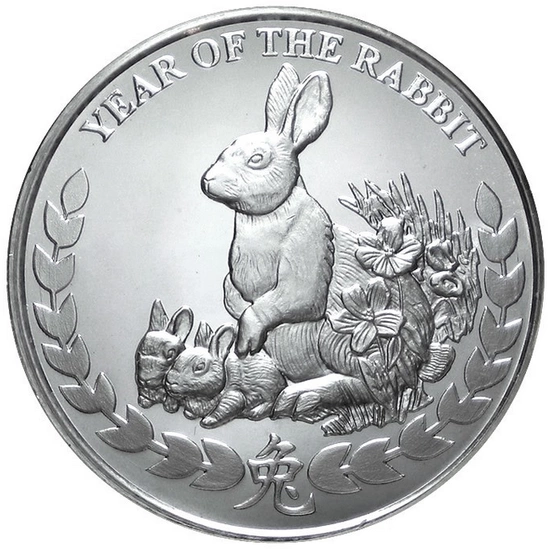 El anverso de la moneda de plata del Año del Conejo está decorado con el emblema de Somalilandia, la inscripción "REPÚBLICA DE SOMALILANDIA" e información sobre el peso, la pureza del lingote, el valor facial y el año de acuñación de la moneda.
