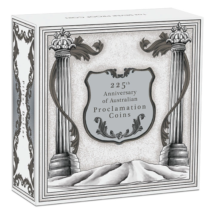 Al emitir la moneda Pillar Dollar 2025 1oz Silver Proof, la Casa de la Moneda de Perth conmemora el 225º aniversario de las Monedas Proclamatorias australianas. Estas monedas fueron introducidas en respuesta a la crisis monetaria de 1800 que afectó a la colonia de Nueva Gales del Sur. El gobernador Macquarie trajo reales españoles, que fueron transformados en "holey dollars" y "dumps", lo que dio inicio a la moneda australiana.