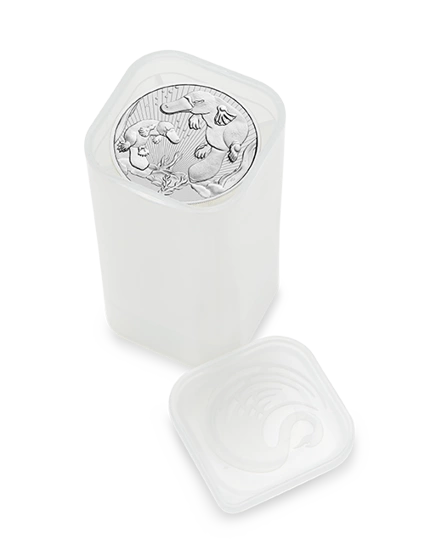 La moneda de lingotes de plata Next Generation, que representa a una madre y su hijo de la especie pecker y está acuñada en plata pura de 2 oz y 9999 de ley, está disponible para su compra en piezas individuales (envueltas en tapas de ceca), tubos de ceca (10 piezas) y paquetes a granel (100 piezas).