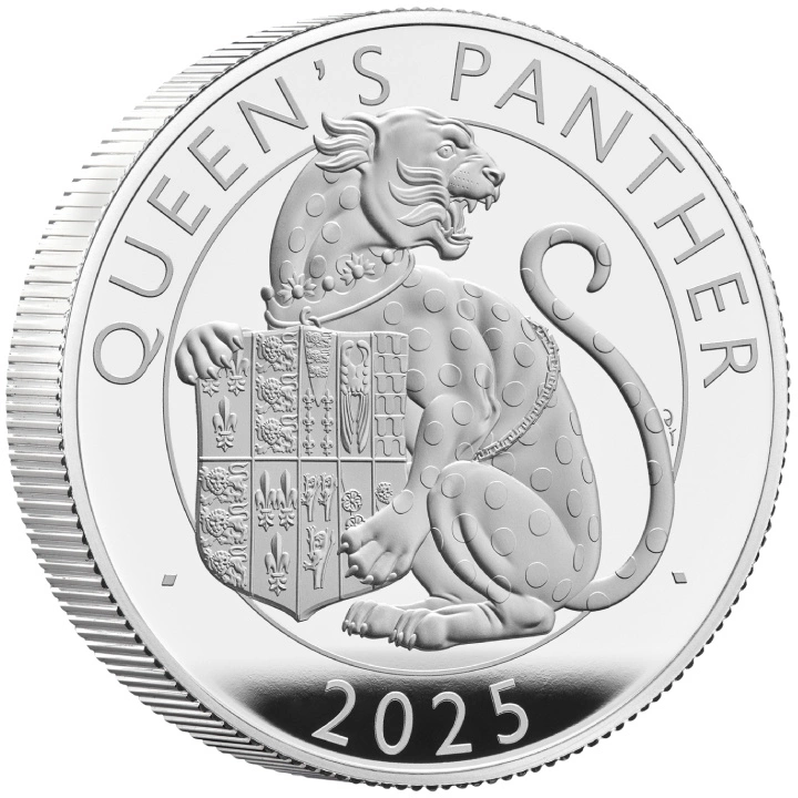 El reverso representa una de las bestias del Reino de los Tudor -la Pantera de la Reina- y la inscripción «QUEEN'S PANTHER». «2025» El reverso fue diseñado por David Lawrence.