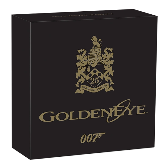 La James Bond 007 GoldenEye 1 oz Silver 2020 fue producida por la ceca más antigua de Australia, Perth Mint, en nombre del Estado de Tuvalu, por lo que está garantizada por el Gobierno de Tuvalu y tiene curso legal en dicho país. Además, la moneda de plata que representa al personaje del título se presenta en una tapa de plástico acompañada de un estuche exclusivo y un certificado de autenticidad.