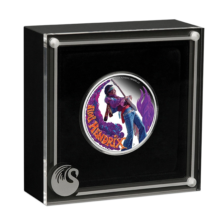 Tuvalu: Jimi Hendrix Coloreada 1 oz Plata 2025 Proof es una moneda de colección única que conmemora a uno de los guitarristas más grandes de todos los tiempos: Jimi Hendrix. Un ícono del rock, conocido por su técnica revolucionaria en la guitarra y sus inolvidables actuaciones en el escenario, ha dejado una marca imborrable en la historia de la música.