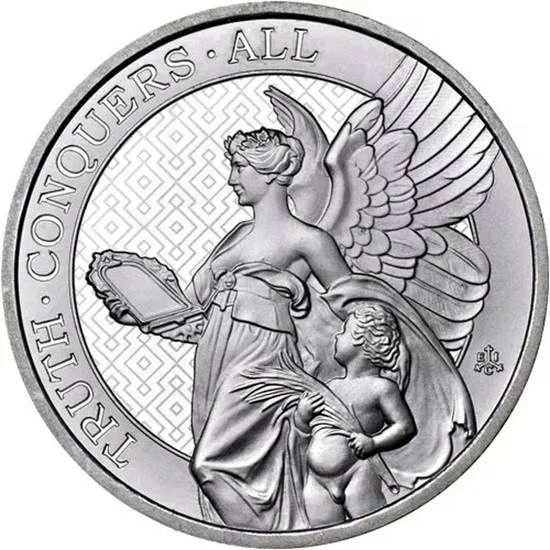 The Queen's Virtues: Truth 1 oz Silver 2022 es la segunda moneda de la serie de inversión que simboliza la "verdad". Está fabricada en plata pura Ag.999, pesa una onza troy y mide 39 mm de diámetro. El respetado productor de metales preciosos The East India Company es el responsable de su emisión. Además, cada moneda de plata de la serie tiene curso legal en la isla de Santa Elena.