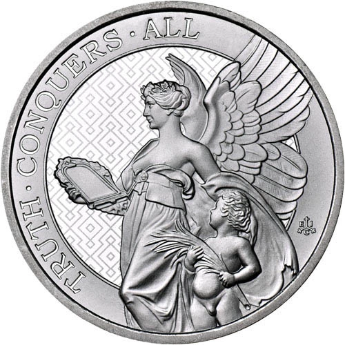 The Queen's Virtues: Truth 5 oz Silver 2022 es la segunda moneda de la serie de inversión que simboliza la "verdad". Está fabricada en plata pura Ag.999, pesa 5 onzas troy y mide 65 mm de diámetro. El respetado productor de metales preciosos The East India Company es el responsable de su emisión. Además, cada moneda de plata de la serie tiene curso legal en la isla de Santa Elena.