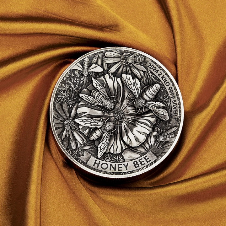 Abeille 2000 grammes d'argent 2024 Pièce antique à haut relief