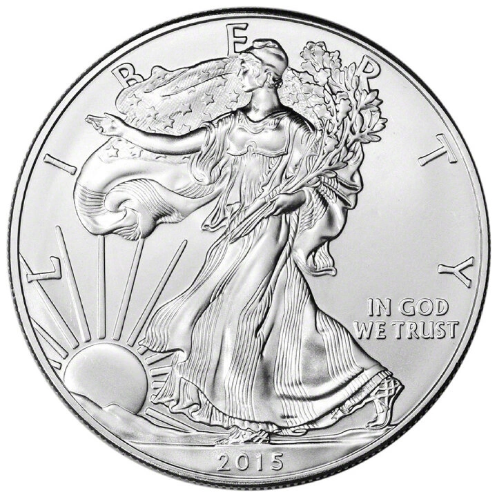 L'avers représente la personnification de la Liberté, symbole des États-Unis et de la libération, marchant avec les attributs de la paix : une branche d'olivier et une torche. À ses pieds, on peut voir le siège du Congrès américain, avec les rayons du soleil en arrière-plan. L'avers comporte la devise figurant dans la Déclaration d'indépendance : « In God We Trust » (Nous croyons en Dieu). L'image de la pièce est restée inchangée depuis le début de la frappe des aigles d'argent en 1986. Elle a été conçue par Adolph Weinman.