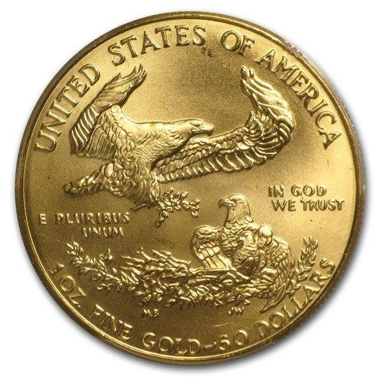 L'American Eagle est une pièce en or frappée en or 22 carats. Elle est plus lourde que les autres pièces en or, car elle est fabriquée avec un ajout de cuivre, ce qui renforce sa résistance et la rend beaucoup plus durable et plus résistante aux dommages mécaniques que les produits frappés en or pur. Malgré l'ajout de cuivre, cette pièce contient 1 once d'or pur (frappée en titre Au .916). Elle est fabriquée à la Monnaie des États-Unis. Elle a été frappée pour la première fois en 1986. Il est intéressant de noter que depuis le début de la frappe, l'image de la déesse sur l'avers n'a pas changé. Il convient également d'ajouter que l'avers et le revers sont inversés de 180 degrés, ce qui les rend sans aucun doute uniques, car c'est la seule pièce au monde frappée avec un poinçon inversé. Toute la production est réalisée à la main. Les pièces sont placées dans une presse contenant des colorants spéciaux. L'effet de flottement du motif au-dessus de la surface miroitante est obtenu grâce à un estampage multiple.