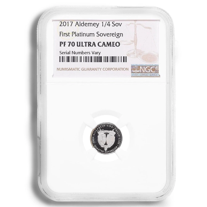 Alderney : 1/4 souverain en platine 2017 Proof NGC PF70 Ultra Cameo