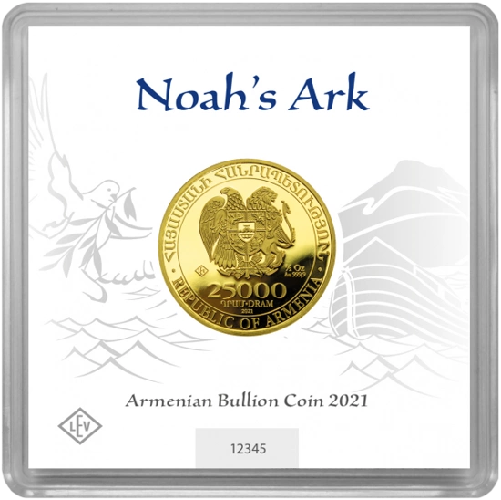 La pièce en or Arche de Noé est un produit d'investissement populaire, frappée dans un poids de 1/2 once et d'une pureté de 9999. Cette pièce intéressante est émise par la Banque centrale d'Arménie. Cependant, le processus de production lui-même a lieu dans une monnaie privée allemande, Leipziger Edelmetall Verarbeitung. Les pièces à l'effigie de l'arche sont garanties par le gouvernement de la République d'Arménie quant à leur légalité, la pureté de leur alliage et l'origine du métal, et constituent un moyen de paiement légal dans ce pays.
