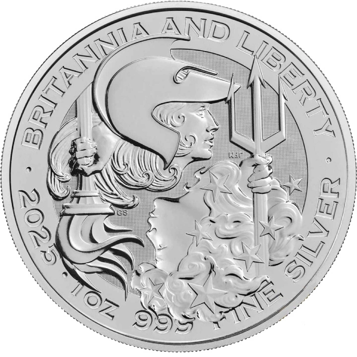 La Britannia and Liberty 1 Ounce Silver 2025 est un produit d'investissement qui honore les symboles nationaux : Britannia et Liberty. Ces figures symbolisent également la vaillance et la liberté - des vertus qui sous-tendent les identités nationales du Royaume-Uni et des États-Unis.L'argent Britannia et Liberty est frappé en lingot fin pur, pesant une once troy. Le célèbre hôtel des monnaies européen, The Royal Mint, est responsable de sa production.L'avers représente le roi Charles III de Grande-Bretagne, tel que dessiné par Martin Jennings. Des informations sur la valeur faciale de la pièce y figurent également. Les tours représentent Britannia et Liberty. En outre, l'inscription " BRITANNIA AND LIBERTY " y figure, ainsi que des informations sur la pureté, la pureté de l'or et la date d'émission. Gordon Summers et Joseph Menna sont responsables de la conception du revers.Designer