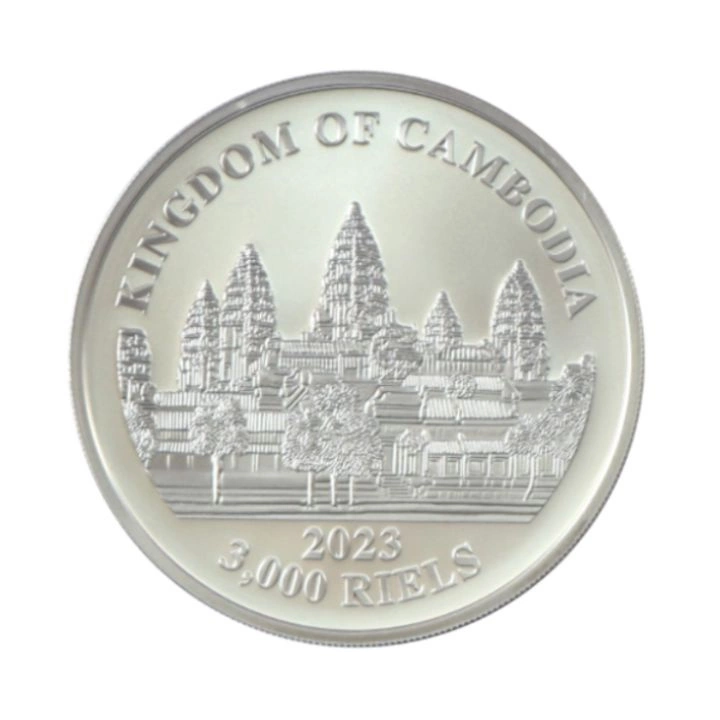 Cambodge : Série Faune sauvage - Léopard nébuleux coloré 1 oz d'argent 2023 est une opportunité d'investissement intéressante qui peut enrichir le portefeuille d'un collectionneur. Ce produit de la « Série Faune sauvage » représente le léopard nébuleux (Neofelis nebulosa). La population de cette espèce est menacée d'extinction, c'est pourquoi l'animal figure sur la liste rouge de l'UICN. La pièce est en argent pur Ag.999, pèse une once troy et a un diamètre de 40,7 mm. Le tirage de la pièce est de 10 000 exemplaires. La pièce est garantie par l'État cambodgien et a cours légal dans le pays d'émission. L'avers représente le temple d'Angkor Wat au Cambodge et l'inscription « KINGDOM OF CAMBODIA » (Royaume du Cambodge). L'avers comporte également la date de frappe et la valeur nominale de la pièce. Le revers de la pièce en argent représente un léopard coloré, l'inscription « CLOUDED LEOPARD » (léopard nébuleux), ainsi que le poids et la finesse du métal.Besoin d'aide ? Avez-vous des questions ?Posez votre question et nous vous répondrons rapidement. Les questions et les réponses les plus intéressantes seront publiées pour que d'autres puissent les consulter.