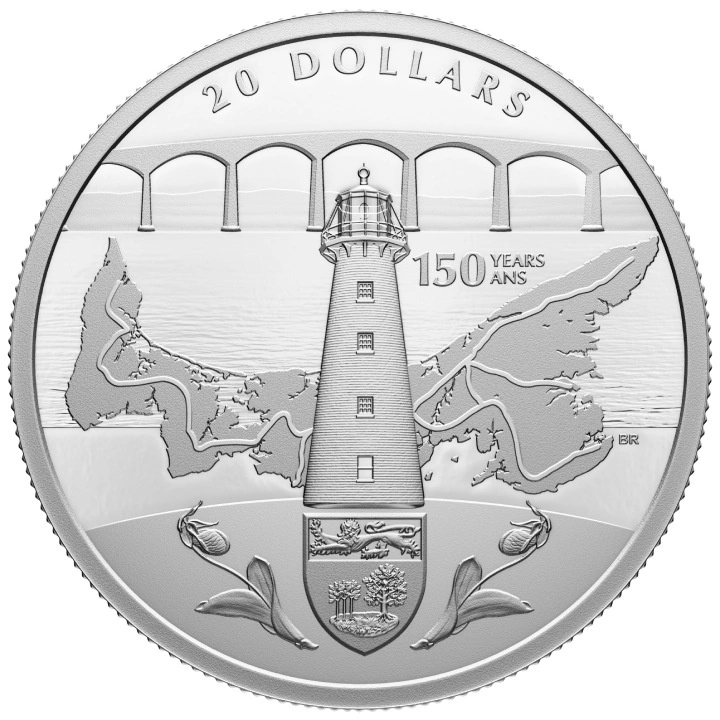 La pièce canadienne : 150e anniversaire de l'adhésion de l'Île-du-Prince-Édouard à la Confédération 20 Silver 2023 Proof commémore le 150e anniversaire (1873-2023) de l'adhésion de l'Île-du-Prince-Édouard à la Confédération canadienne. La pièce est frappée en argent Ag.9999, pèse 31,39 grammes et a un diamètre de 38 mm, en qualité proof. La pièce est livrée dans un emballage individuel certifié. Le tirage de ce produit est de 5 000 pièces. De plus, cette pièce unique a été produite par la Monnaie royale canadienne. La pièce est garantie par le gouvernement canadien quant à sa légalité, sa pureté et l'origine du métal, et a cours légal dans le pays d'émission. L'avers présente une image de la reine Elizabeth II, l'inscription « 1952-2022 » et des informations sur l'année et le pays d'émission, conçues par Susanna Blunt. Le revers montre un phare historique, les armoiries et une carte de l'île Saint-Édouard. Le revers comporte également l'inscription « 150 YEARS ANS » et la valeur nominale de la pièce. Le revers a été conçu par Bonnie Ross.Designer