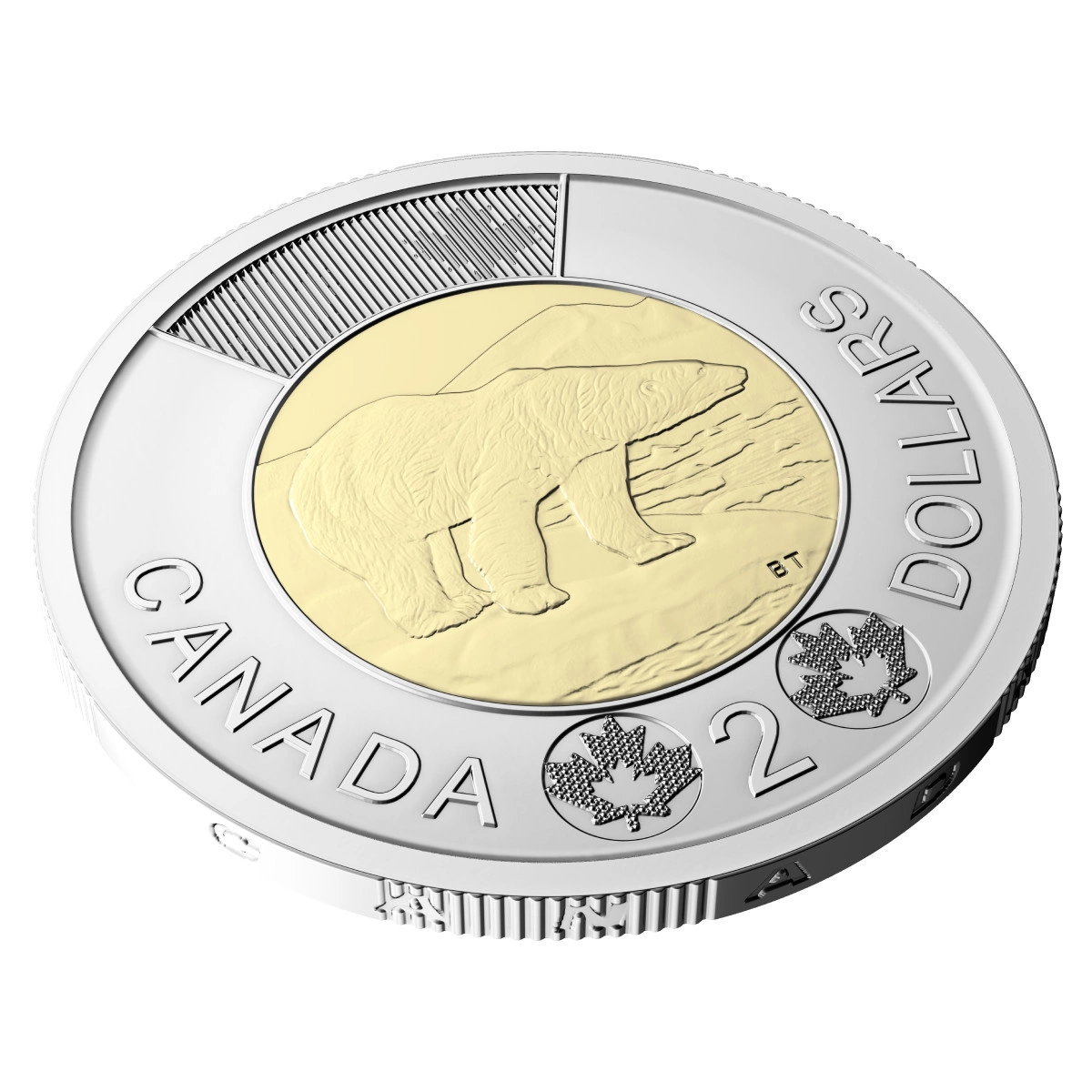 ada : 30e anniversaire du Toonie 2 2026 est un produit numismatique unique qui commémore le 30e anniversaire de la mise en circulation de la pièce canadienne de 2 dollars, connue sous le nom de Toonie. Chaque pièce de collection de 2 dollars de 2026 se distingue par la marque « W » de la Monnaie royale canadienne de Winnipeg, où la pièce Toonie est frappée depuis 1996. La pièce est emballée dans un papier élégant, rendant ainsi un hommage unique à l'ours polaire qui a conquis le cœur des Canadiens et à la pièce qui a révolutionné la circulation monétaire au Canada. La pièce pèse 6,99 g, a un diamètre de 28 mm, une tranche cannelée et a été frappée selon la technique Non-Circulation (collection, non destinée à la circulation). Les concepteurs sont Brent Townsend (revers) et Steven Rosati (avers). L'avers représente le portrait du roi Charles III avec son nom, l'inscription royale et la période 1996-2026. Le revers montre un ours polaire dans son habitat naturel, avec le nom du pays émetteur - Canada - et la valeur nominale de la pièce.LE PRIX DE VENTE CONCERNE 1 PIÈCE.Designer