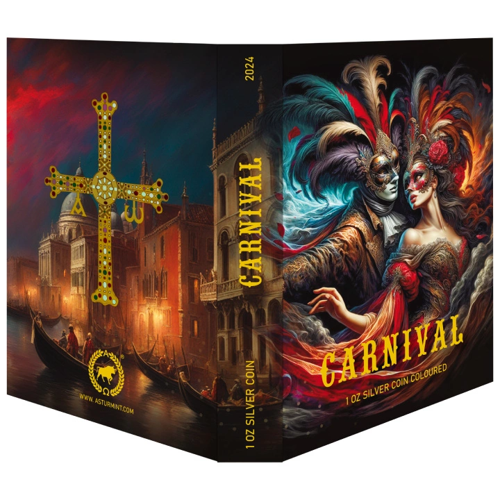 Pièce d'argent Canada : Carnival colorée 1 once d'argent 2024, qui célèbre le carnaval, période de fêtes, de danses, de défilés et de bals costumés qui ont lieu principalement en février ou mars, selon la région et la culture. Cette pièce unique est recouverte de ruthénium noir. Elle a été frappée en argent Ag.9999, pèse 1 once troy et mesure 38 mm de diamètre. Chaque exemplaire est livré dans un emballage individuel certifié. Le tirage est limité à 500 exemplaires. De plus, cet exemplaire exceptionnel a été produit par la Monnaie royale canadienne. La pièce est garantie par le gouvernement canadien quant à sa légalité, la pureté du métal et l'origine du métal, et est également un moyen de paiement légal sur le territoire du pays émetteur. L'avers de la pièce en argent représente deux masques ainsi que l'inscription « CARNIVAL » et la date d'émission. Le revers de la pièce représente un homme et une femme colorés portant des masques. Le revers comporte des informations sur le poids, le pays émetteur et la pureté du métal.Besoin d'aide ? Avez-vous des questions ?Posez votre question et nous vous répondrons rapidement. Les questions et les réponses les plus intéressantes seront publiées pour que d'autres puissent les consulter.