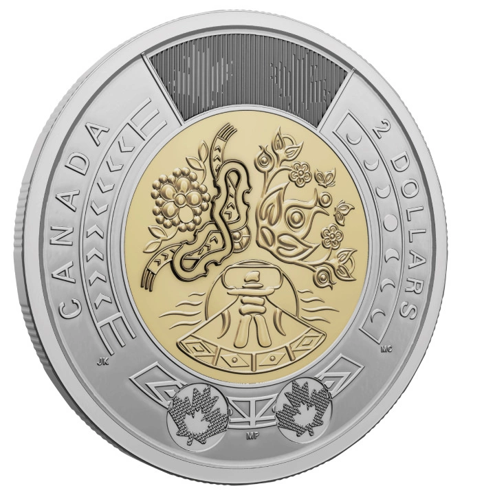 Canada: National Indigenous Peoples Day 2023 is a commemorative coin celebrating National Indigenous Peoples Day on June 21. The celebration aims to recognize and honor the cultures of the Indians, Eskimos, and Métis. The coin was designed by three individual artists: Megan Currie, Myrna Pokiak, and Jennine Krauchi. The coin is minted from nickel steel and aluminum bronze, weighs 6.99 grams, and has a diameter of 28 mm. This unique coin was produced by The Royal Canadian Mint. The coin is guaranteed by the Government of Canada as to its legality, purity, and origin of the metal, and is legal tender throughout the country of issue. The mint roll contains 25 coins. The obverse features an image of Queen Elizabeth II and the date of issue, designed by Susanna Blunt. The reverse depicts impressive designs and symbols drawn from the culture and heritage of Canada's indigenous peoples, as well as the face value and country of issue. THE SALE PRICE IS FOR 1 PIECE.Designer