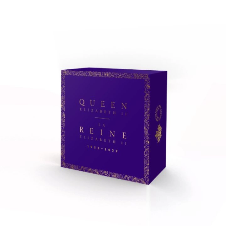 Canada : The Imperial State Crown 250 Gold 2022 Proof est un produit unique qui commémore le 70e anniversaire du couronnement de Sa Majesté la reine Elizabeth II. Elle a été couronnée reine le 2 juin 1953 à l'abbaye de Westminster à Londres. En 2023, cela fera 70 ans depuis cet événement historique. Au revers, on trouve quatre cristaux et 16 pierres de verre bleues et vertes qui représentent la couronne de l'État. La pièce est frappée en or Au.9999, pèse 60,08 grammes et mesure 38 mm de diamètre, dans la norme proof. Chaque exemplaire est livré dans un emballage individuel certifié. Le tirage est limité à 225 exemplaires. De plus, cet exemplaire exceptionnel a été produit par la Monnaie royale canadienne. La pièce est garantie par le gouvernement canadien quant à sa légalité, la pureté du métal et l'origine du métal, et est également un moyen de paiement légal sur le territoire du pays émetteur. L'avers présente quatre portraits de la reine Elizabeth II de profil et les inscriptions « ELIZABETH II D G REGINA », « 1952-2022 ». Le revers représente quatre cristaux et seize pierres de verre - huit bleues et huit vertes - qui entourent les initiales de la reine ainsi que les informations relatives au pays émetteur et à la valeur nominale de la pièce. Le revers a été conçu par Cecily Mok.Fabricant