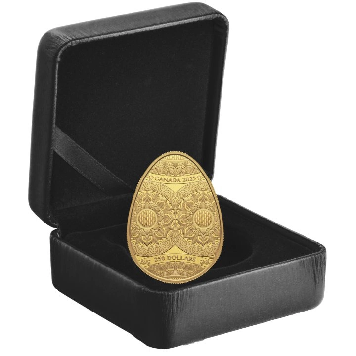 La pièce de collection Canada : Œuf de Pâques en or 2023 Proof est un exemplaire qui fait référence à l'œuf de Pâques ukrainien. Ce produit peut également être une idée de cadeau intéressante pour la période de Pâques. La Pisanka en or est une pièce limitée, fabriquée à partir d'un métal pur de titre Au.9999, d'un poids de 58,5 g, en qualité proof. Ses dimensions sont de 45 × 33 mm. L'émission collector « Pisanki », limitée à 275 exemplaires, est réalisée par la célèbre Monnaie royale canadienne. Il convient d'ajouter ici que chaque pièce de 2023 sera livrée dans un élégant étui accompagné d'un certificat d'authenticité délivré par la Monnaie royale canadienne. L'avers de la pièce en or représente l'effigie de la reine Elizabeth II, selon le dessin de Susanna Blunt. Le revers présente un motif caractéristique du folklore ukrainien, avec un motif de tournesols, ainsi que des informations sur la valeur nominale, l'année et le pays émetteur. Le dessin de la pièce de 2023 est l'œuvre de l'artiste canadien Dave Melnychuk.Designer