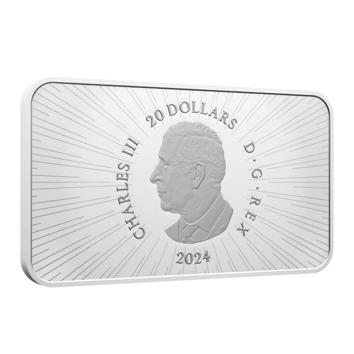 Canada: Canada’s Unexplained Phenomena - The Langenburg Event kolorowany 20 Srebro 2024 Proof to 7 moneta z serii "Canada’s Unexplained Phenomena", dla kolekcjonerów, którzy uwielbiają historie o UFO. Walor przedstawia wydarzenie w Langenburgu.Walor bity jest ze srebra próby Ag.9999, o wadze 31,56 gramów oraz wymiarach 49,80 mm x 28,60 mm, w standardzie proof. Egzemplarz posiada indywidualne, certyfikowane opakowanie. Nakład produktu wynosi 6 500 sztuk. Ponadto, ten niezwykły egzemplarz został wyprodukowany przez mennicę The Royal Canadian Mint. Moneta posiada gwarancję rządu Kanady, co do jego legalności, czystości kruszcu oraz pochodzenia metalu, a także jest pełnoprawnym środkiem płatniczym na terenie kraju emitenta.Awers ukazuje podobiznę Króla Karola III oraz informację o wartości nominalnej monety i dacie emisji, według projektu Steven'a Rosati.Na rewersie przedstawiony jest mężczyzna stojący tyłem oraz pięć stalopodobnych obiektów na skraju podmokłego terenu. Moneta zawiera informacje o kraju emitenta. Projektantem rewersu był Steve Hepburn.Designer