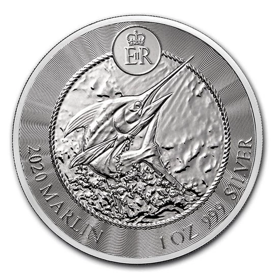 La pièce d'argent Marlin 2020 est la quatrième pièce de la série marine. C'est une proposition intéressante pour tout investisseur qui souhaite diversifier et enrichir son portefeuille d'investissement avec une once d'argent unique. Chaque pièce à l'effigie d'un représentant de la famille des marlins a été frappée dans un métal pur de titre Ag.999 dans une édition limitée à 50 000 exemplaires. De plus, la série en argent est produite par la Scottsdale Mint, une monnaie bien connue des marchands, et chaque pièce est un moyen de paiement légal aux îles Caïmans. L'avers est orné d'une effigie de la reine Elizabeth II, ainsi que de la date d'émission, de la valeur nominale et du pays d'émission. Le revers de la pièce présente une image réaliste d'un marlin.Besoin d'aide ? Avez-vous des questions ?Posez votre question et nous vous répondrons rapidement. Les questions et les réponses les plus intéressantes seront publiées pour que d'autres puissent les consulter.