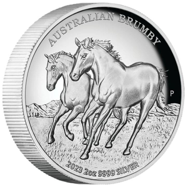 Cheval sauvage australien - Brumby 2 onces d'argent 2023 Proof High Relief