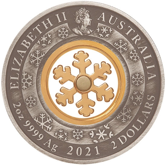 La pièce Christmas Wonderland colorée 2 onces d'argent 2021 Antiqued Coin est une proposition remarquable provenant d'un fabricant de métaux précieux renommé, The Perth Mint. Cette pièce fait référence à Noël. Au centre de la pièce se trouve un flocon de neige recouvert d'or 24 carats. La pièce d'argent est un produit fabriqué à partir d'argent pur de titre Ag.9999, d'un poids de 2 onces troy et d'un diamètre de 45,6 mm, dans le standard antiqued. Cette pièce est garantie par le gouvernement australien et constitue un moyen de paiement légal dans ce pays. Il est important de noter qu'il s'agit d'une pièce en argent dont le tirage est strictement limité à 2 500 exemplaires. La pièce est livrée dans son emballage d'origine certifié. L'avers représente le portrait de la reine Elizabeth II dans la partie supérieure de la pièce, ainsi que des informations sur la valeur nominale, le poids, la finesse de la pièce et la date d'émission. L'avers comporte les inscriptions « ELIZABETH II », « AUSTRALIA » et des flocons de neige. L'avers a été conçu par Jody Clark. Le revers représente un flocon de neige doré. On y voit également des maisons enneigées, des bonhommes de neige, des rennes et des enfants s'amusant dans la neige. De plus, le signe de la Monnaie de Perth, représenté par la lettre « P », y est gravé. Le revers a été conçu par Monique Reeves.Besoin d'aide ? Avez-vous des questions ?Posez votre question et nous vous répondrons rapidement. Les questions et les réponses les plus intéressantes seront publiées pour que d'autres puissent les consulter.